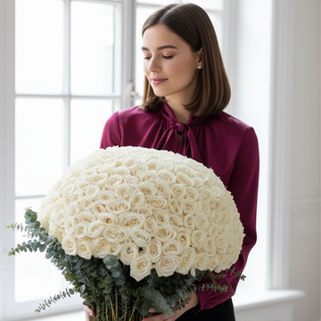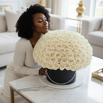 Pure, elegant, and profoundly meaningful, the White Rose Monarch symbolizes sincerity, respect, and everlasting devotion. This refined arrangement brings a sense of calm luxury and timeless beauty, making it ideal for moments that deserve grace and significance. A classic choice that speaks softly yet leaves a powerful impression.